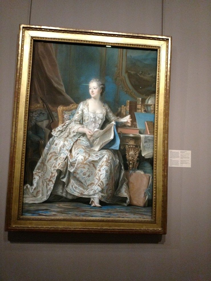 Madame Pompadour at the Louvre making her statement! What a fabulous dress, and check out the shoes.