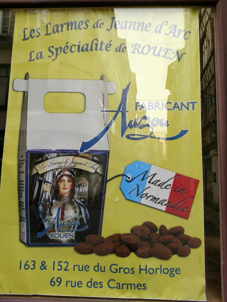 The Tears of Joan of Arc, chocolate covered nuts…a delicious, unusual confection that is very popular in Rouen, the site of Joan’s execution.